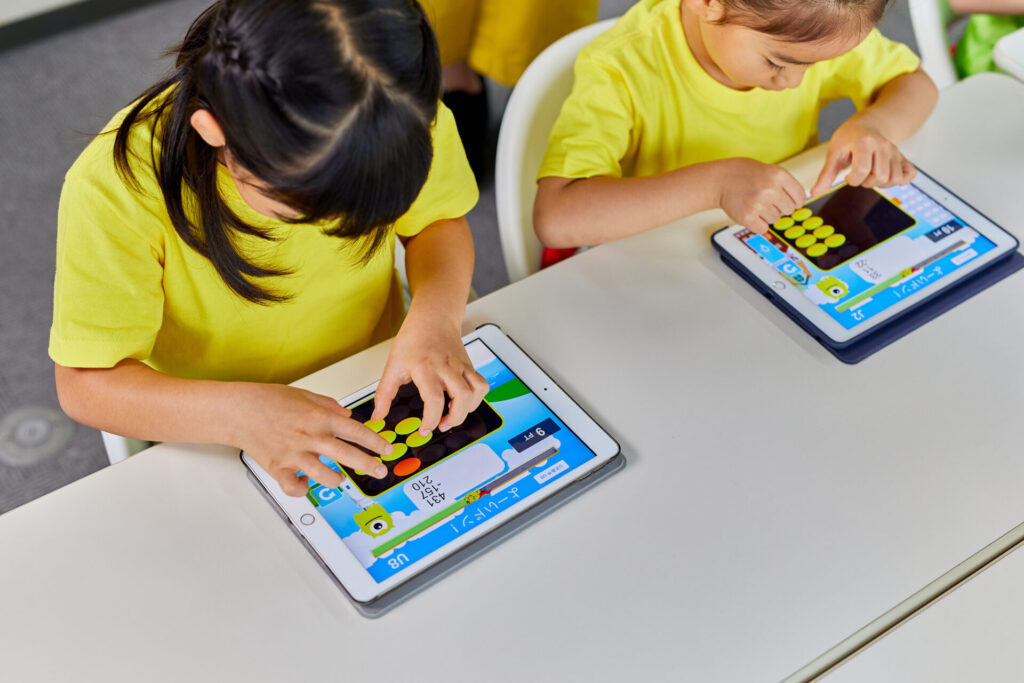 そろタッチは、数字を珠の形に置き換えてイメージして暗算をしていきます。 珠の色や動き、音の工夫により、紙のプリントでは続かなかった子も自分からどんどん進められます